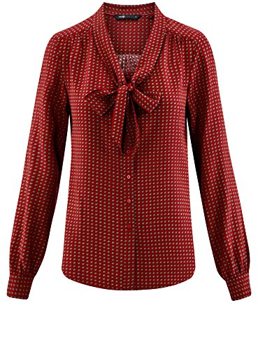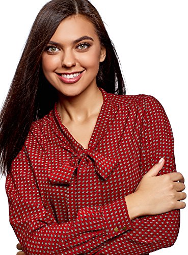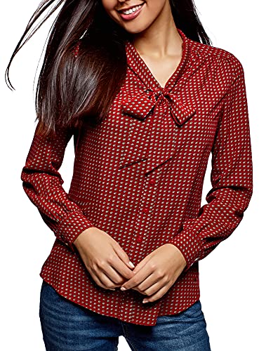 Oodji Ultra Donna Camicetta in Viscosa con Laccetti, Rosso, IT 42 / EU 38 / S