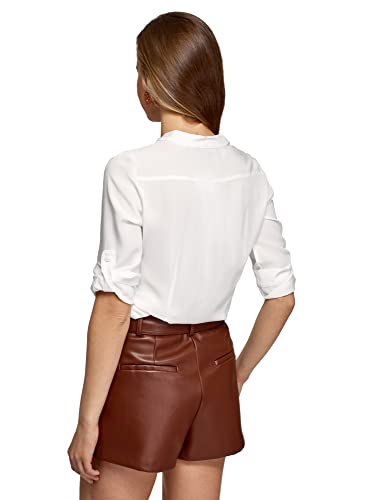 Oodji Ultra Donna Camicetta in Viscosa con Maniche Regolabili, Bianco, XXS