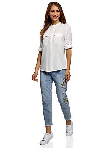Oodji Ultra Donna Camicetta in Viscosa con Taschini, Bianco, IT 46 / EU 42 / L