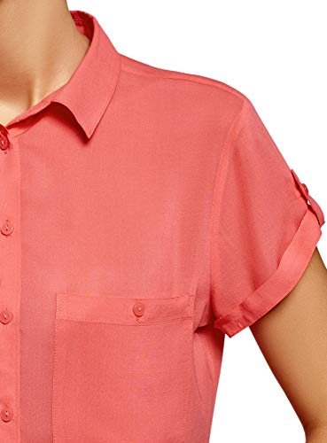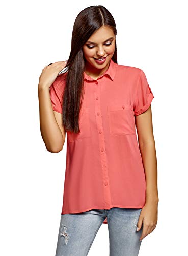 Oodji Ultra Donna Camicetta in Viscosa con Taschini, Rosso, IT 44 / EU 40 / M