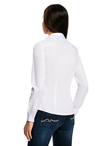 Oodji Ultra Donna Camicia Attillata con Scollo a V, Bianco, IT 44 / EU 40 / M