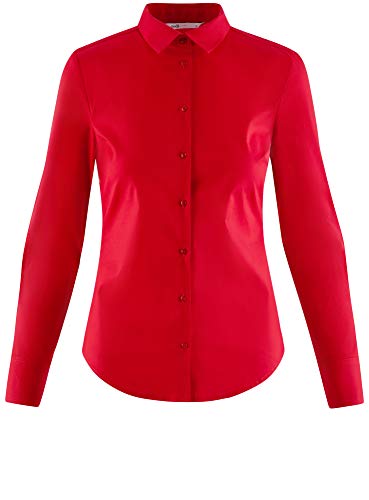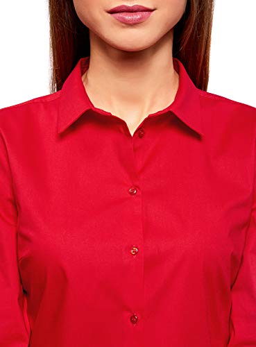 Oodji Ultra Donna Camicia Basic in Cotone, Rosso, IT 46 / EU 42 / L