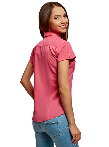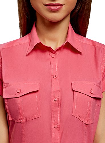 Oodji Ultra Donna Camicia Basic con Maniche Corte, Rosa, IT 44 / EU 40 / M