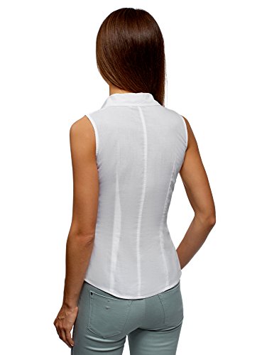 Oodji Ultra Donna Camicia Basic Senza Maniche, Bianco, IT 38 / EU 34 / XXS