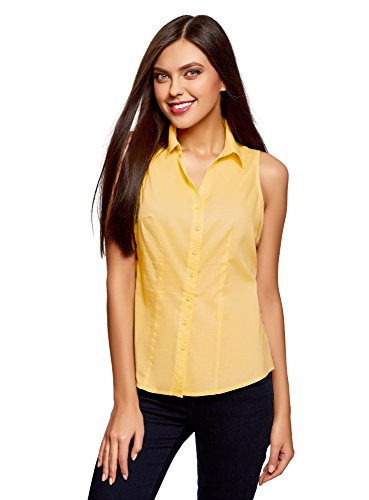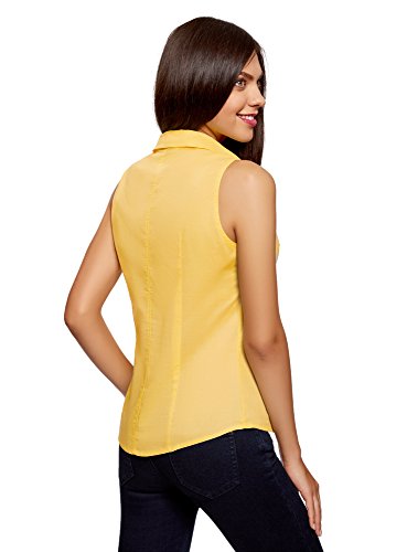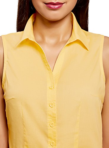 Oodji Ultra Donna Camicia Basic Senza Maniche, Giallo, IT 40 / EU 36 / XS