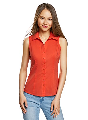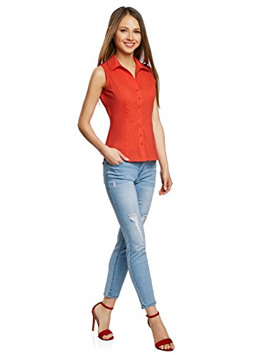 Oodji Ultra Donna Camicia Basic Senza Maniche, Rosso, IT 38 / EU 34 / XXS