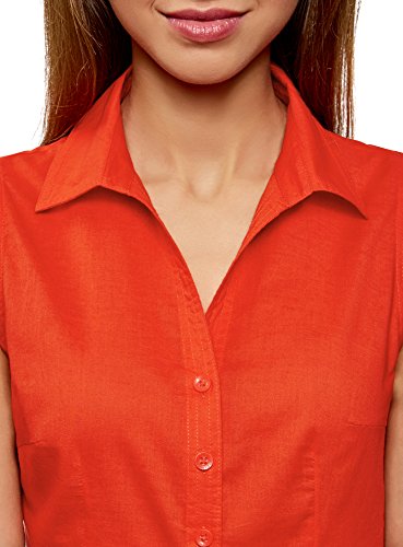 Oodji Ultra Donna Camicia Basic Senza Maniche, Rosso, S