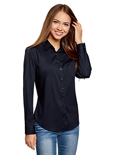 Oodji Ultra Donna Camicia Basic con Tasca, Blu, IT 38 / EU 34 / XXS