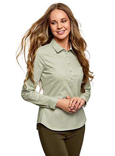 Oodji Ultra Donna Camicia Basic con Tasche sul Petto, Verde, IT 48 / EU 44 / XL