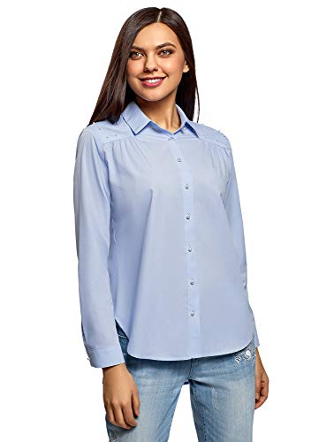 Oodji Ultra Donna Camicia Comoda con Perline Decorative, Blu, XXS