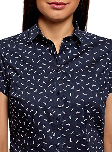 Oodji Ultra Donna Camicia in Cotone con Maniche Corte, Blu, XXS