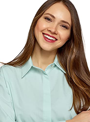 Oodji Ultra Donna Camicia in Cotone con Maniche Lunghe, Verde, M