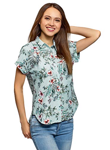 Oodji Ultra Donna Camicia Dritta con Maniche Corte, Verde, XXS