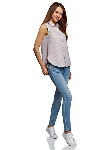 Oodji Ultra Donna Camicia Dritta Senza Maniche, Beige, IT 38 / EU 34 / XXS