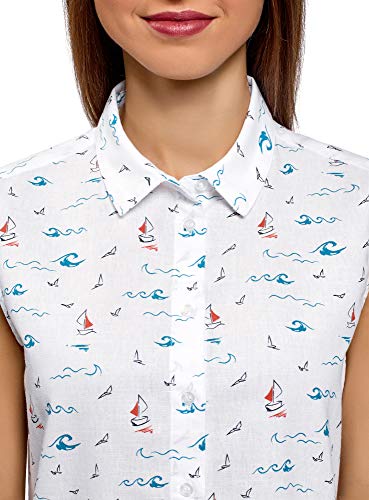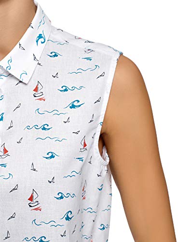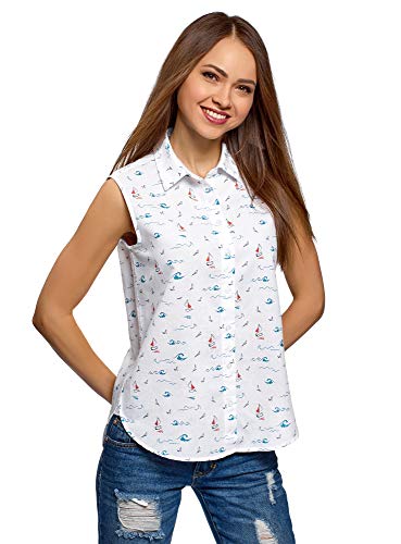 Oodji Ultra Donna Camicia Dritta Senza Maniche, Bianco, XXS