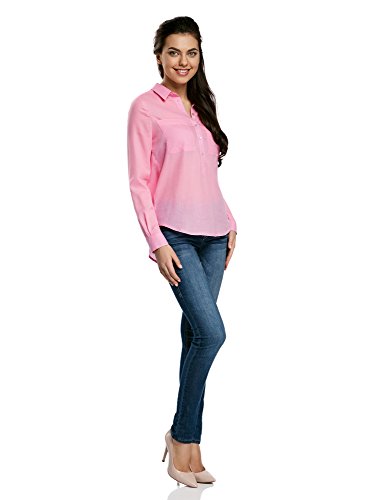 Oodji Ultra Donna Camicia Larga in Cotone, Rosa, XXS