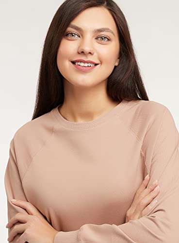 Oodji Ultra Donna Felpa Basic in Cotone, Beige, XL