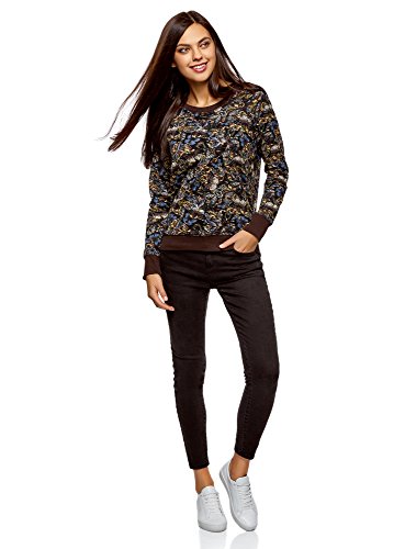 Oodji Ultra Donna Felpa Basic Stampata, Marrone, 42