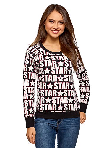 Oodji Ultra Donna Felpa Basic Stampata, Nero, 40