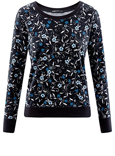 Oodji Ultra Donna Felpa Basic Stampata, Nero, IT 42 / EU 38 / S