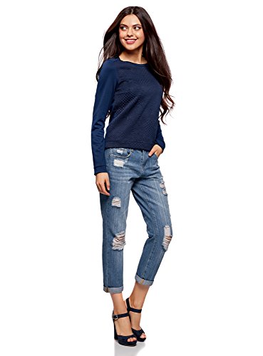 Oodji Ultra Donna Jeans Boyfriend Effetto Invecchiato, Blu, 28W / 32L (IT 44 / EU 40 / M)