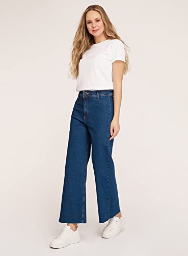 Oodji Ultra Donna Jeans Ampi con Vita Alta, Blu, 28W / 32L
