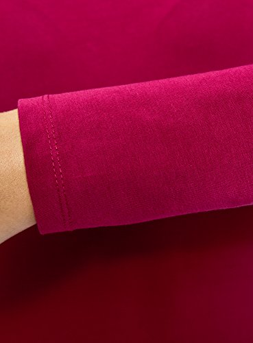Oodji Ultra Donna Maglia in Cotone a Maniche Lunghe a Sbuffo, Rosa, IT 40 / EU 36 / XS