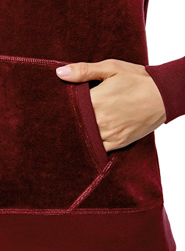 Oodji Ultra Donna Maglia Hoodie Basic con Tasca, Rosso, IT 40 / EU 36 / XS
