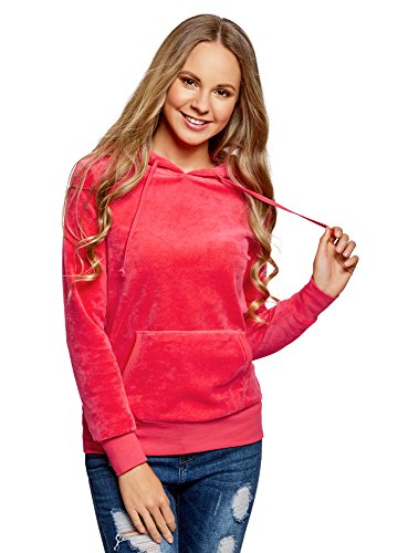 Oodji Ultra Donna Maglia Hoodie Basic con Tasca, Rosa, IT 40 / EU 36 / XS