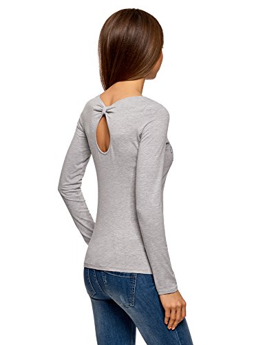 Oodji Ultra Donna Maglia a Maniche Lunghe con Taglio a Goccia Dietro, Grigio, IT 44 / EU 40 / M