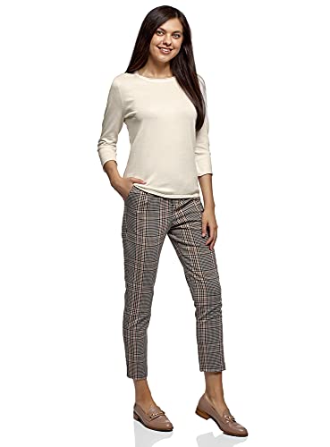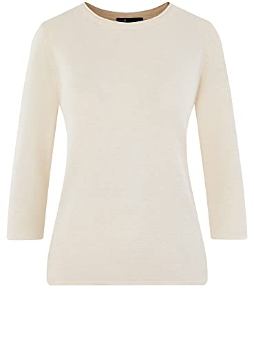 Oodji Ultra Donna Maglione Basic con Scollo Rotondo e Orli a Taglio Vivo, Bianco, S