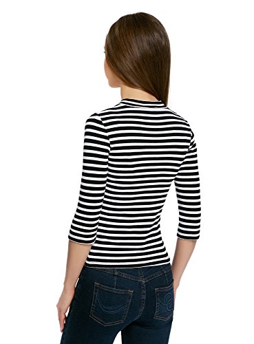 Oodji Ultra Donna Maglione a Coste con Manica a 3/4, Nero, IT 40 / EU 36 / XS