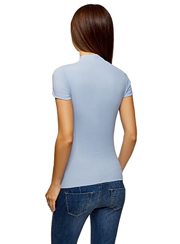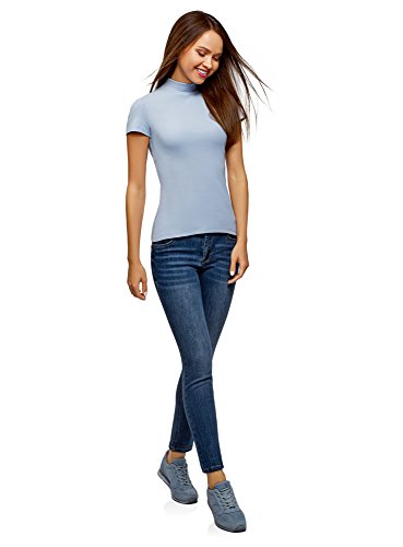 Oodji Ultra Donna Maglione in Cotone con Maniche Corte e Collo Alto, Blu, S