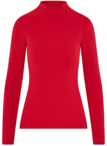 Oodji Ultra Donna Maglione Dolcevita Basic in Cotone, Rosso, XXS