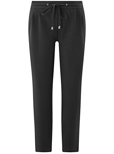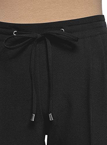Oodji Ultra Donna Pantaloni con Cinta Elastica e Laccetti, Nero, DE 36 / EU 38 / S