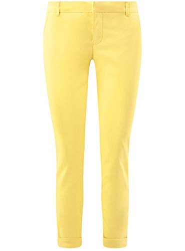 Oodji Ultra Donna Pantaloni in Cotone Basic, Giallo, DE 38 / EU 40 / M