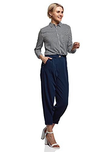 Oodji Ultra Donna Pantaloni con Pinces in Vita, Blu, DE 42 / EU 44 / XL