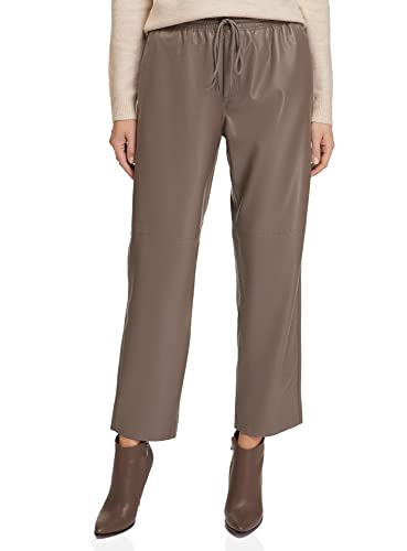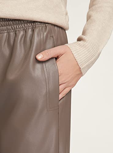 Oodji Ultra Donna Pantaloni in Similpelle con Vita Elastica, Marrone, DE 36 / EU 38 / S