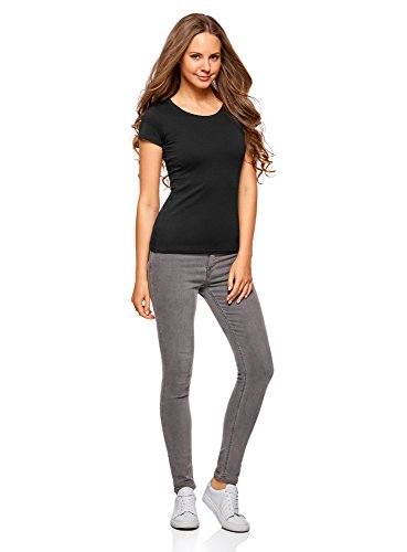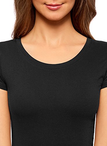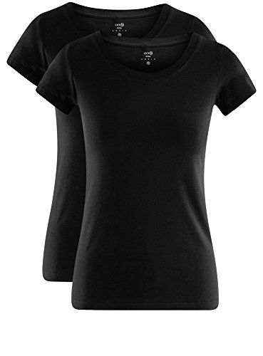 Oodji Ultra Donna T-Shirt Basic in Cotone (Pacco di 2), Nero, S
