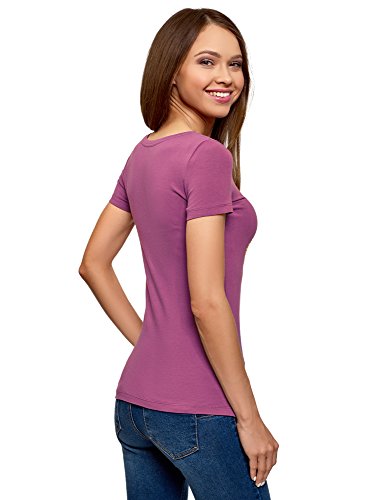 Oodji Ultra Donna T-Shirt Basic con Decorazione in Strass, Viola, IT 48 / EU 44 / XL