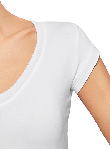 Oodji Ultra Donna T-Shirt Basic con Maniche e Scollo Grezzo, Bianco, IT 46 / EU 42 / L