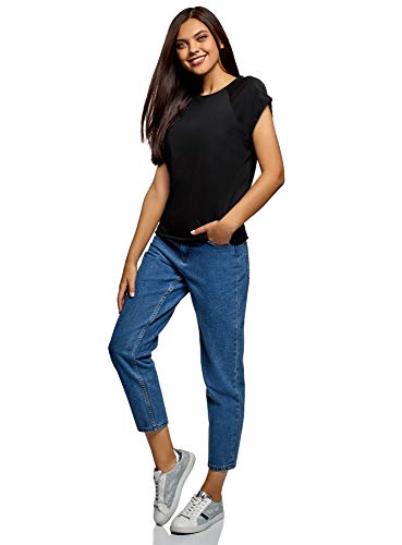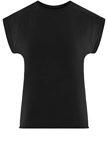 Oodji Ultra Donna T-Shirt in Cotone Basic con Orlo Grezzo, Nero, IT 38 / EU 34 / XXS