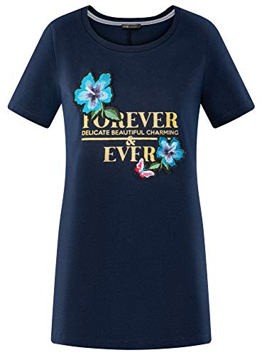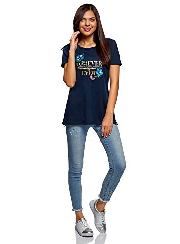 Oodji Ultra Donna T-Shirt in Cotone Larga, Blu, XXS