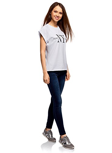 Oodji Ultra Donna T-Shirt in Cotone con Scritta e Orlo Grezzo, Bianco, XS