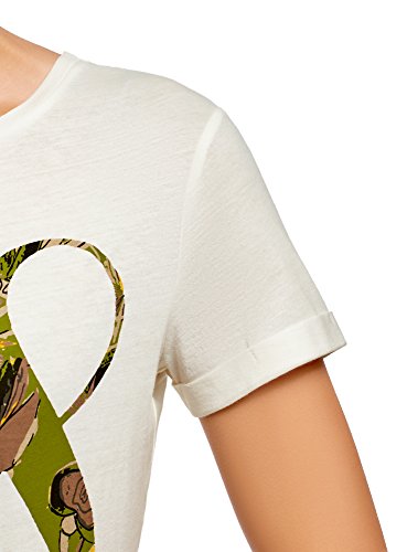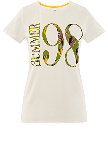 Oodji Ultra Donna T-Shirt in Cotone con Scritta e Orlo Grezzo, Bianco, S