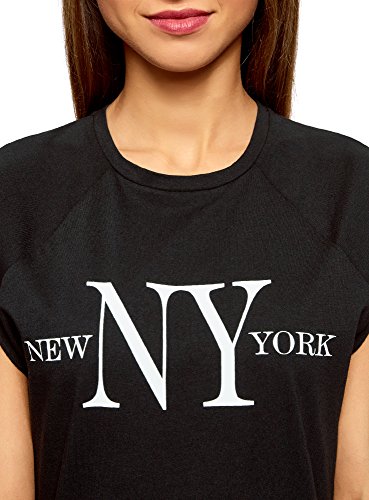 Oodji Ultra Donna T-Shirt in Cotone con Scritta e Orlo Grezzo, Nero, IT 46 / EU 42 / L