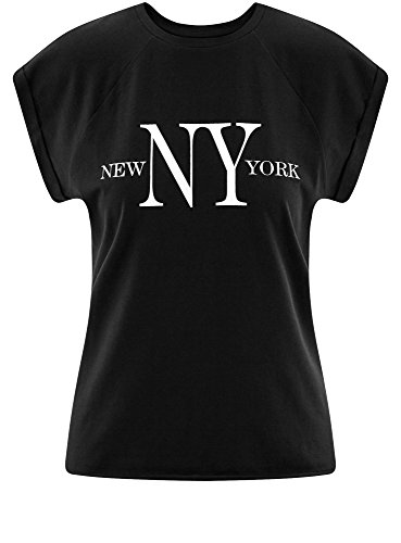 Oodji Ultra Donna T-Shirt in Cotone con Scritta e Orlo Grezzo, Nero, IT 48 / EU 44 / XL