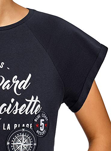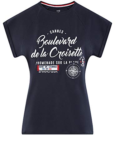 Oodji Ultra Donna T-Shirt in Cotone con Scritta, Blu, S