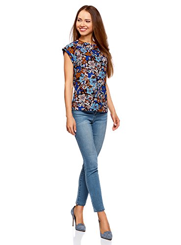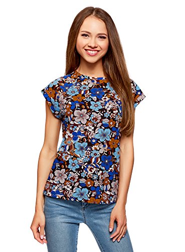 Oodji Ultra Donna T-Shirt in Cotone con Stampa, Multicolore, IT 42 / EU 38 / S