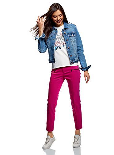 Oodji Ultra Donna T-Shirt Dritta con Ricamo, Bianco, IT 44 / EU 40 / M